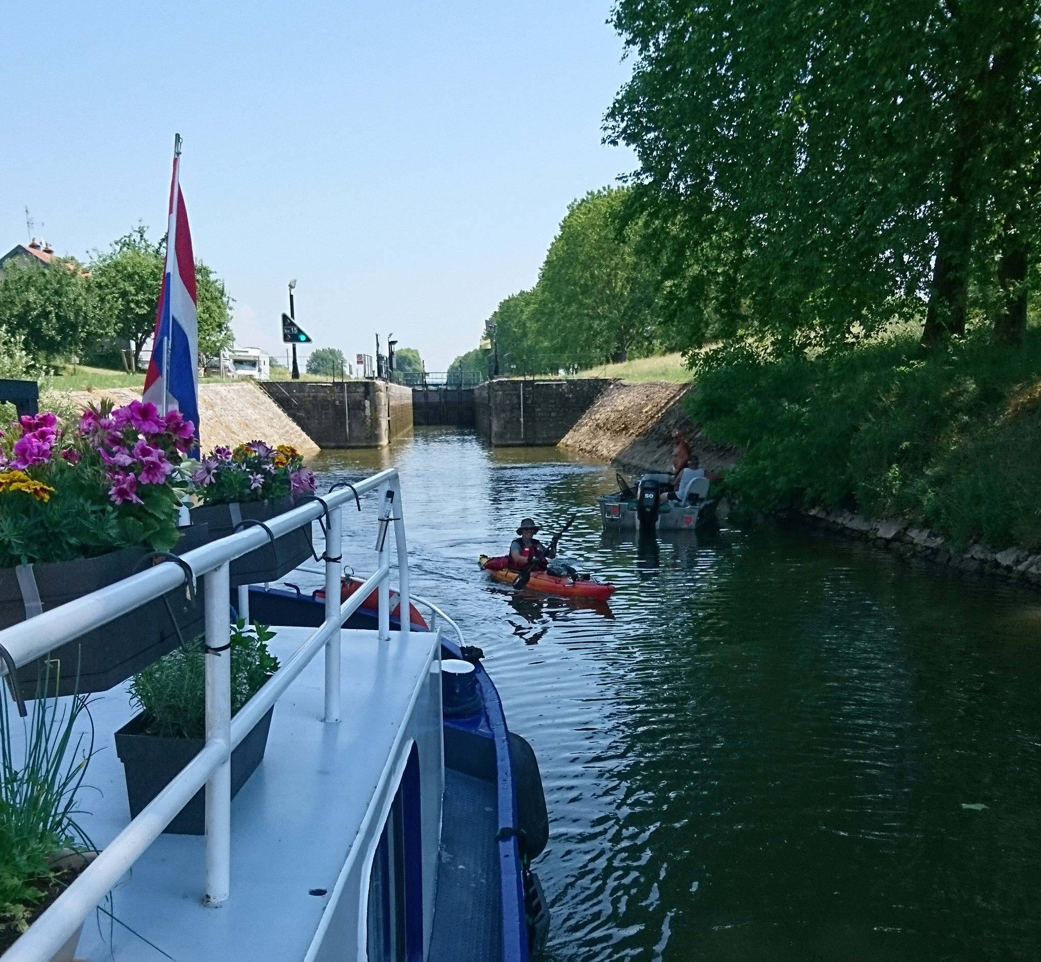 Sharing the ecluse with a canoe tourer, Rigny.crop
